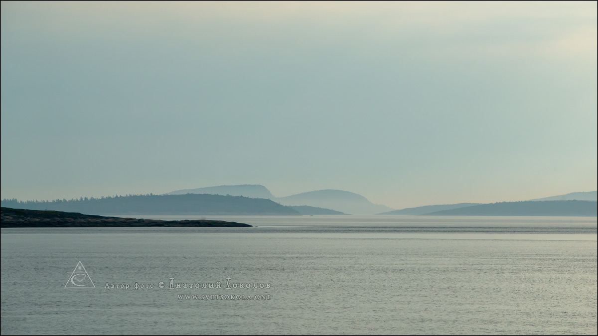 В дымке можно увидеть многочисленные скалистые острова. Ходить по Белому морю без особых поморских навыков чревато гибелью в морской пучине.